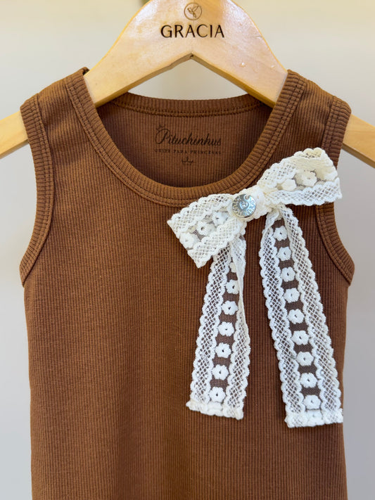 Regata Infantil Laço de Renda Marrom - Pituchinhus