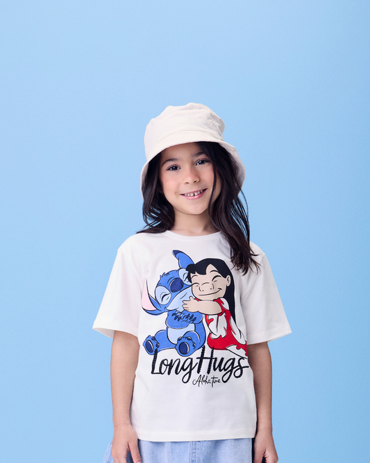 Blusa Infantil Lilo & Stitch Long Hugs Strass - Momi