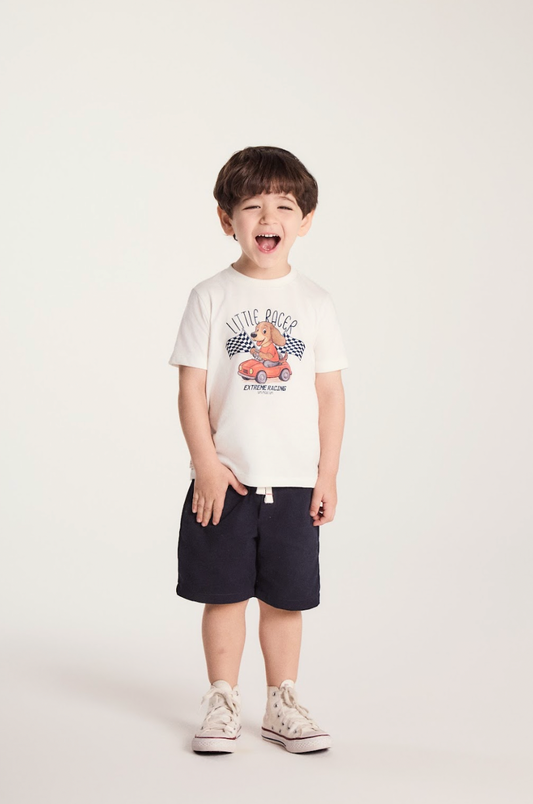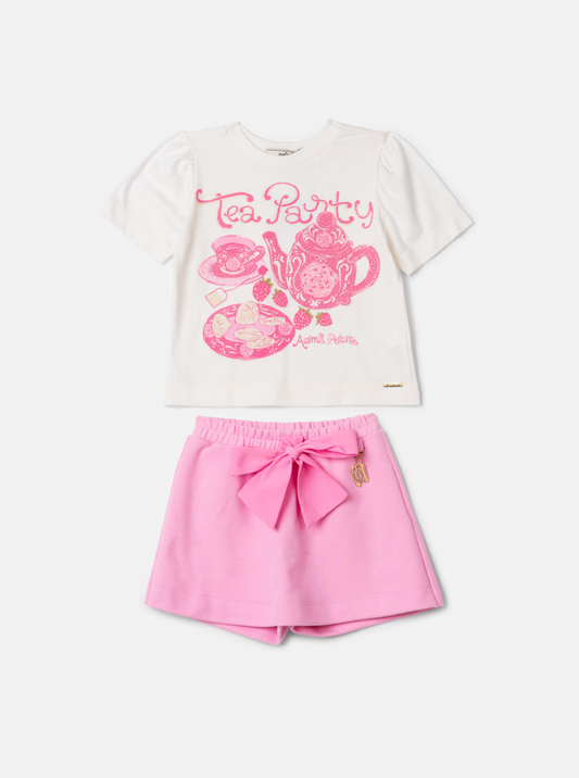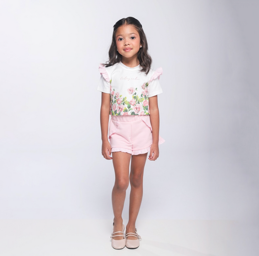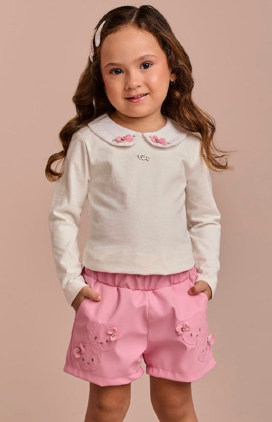 Conjunto Infantil Bata Estampada e Shorts Sarja Lycra Goiaba - Beabá