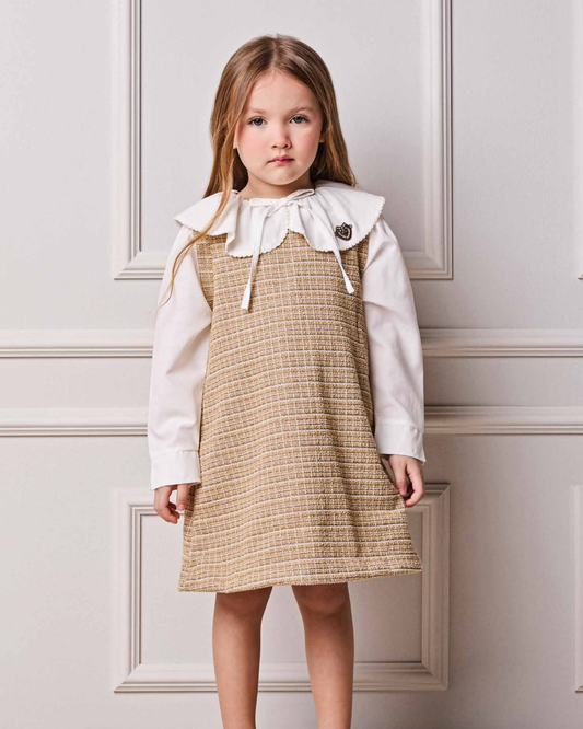 Vestido Infantil Jumper Gola Branca e Pregas - Beabá PRÉ-VENDA
