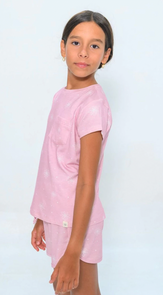 Pijama Infantil Comfy Blusa MC e Shorts Flower Rosa - Conforteca