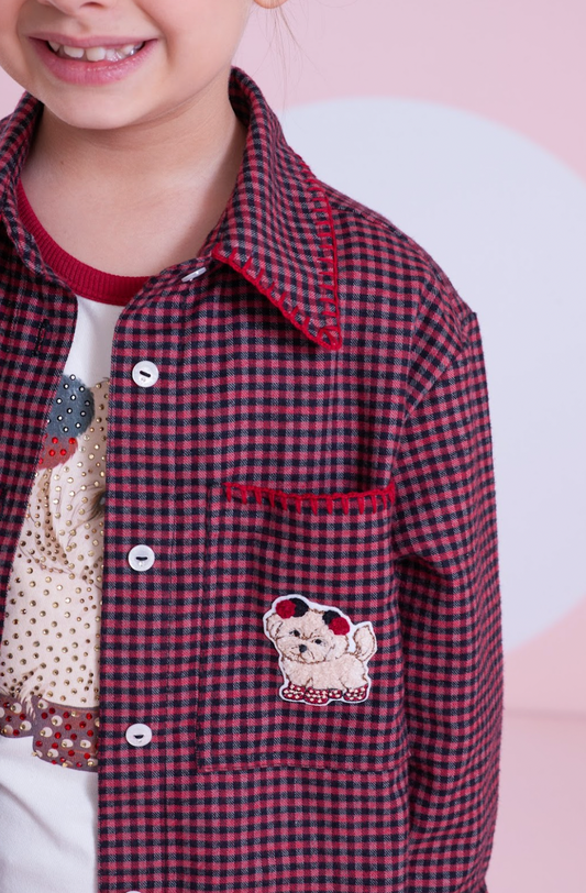 Vestido Infantil Jumper Jacquard Xadrez Vermelho - Beabá