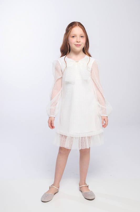 Vestido Infantil Festa com Capa Tule Bordado Creme - Petit Cherie