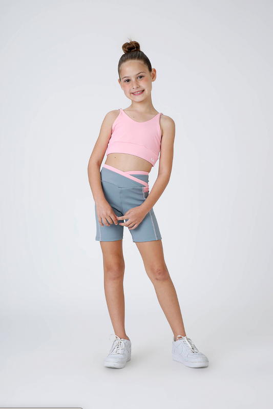 Conjunto Infantil Top Sara Ballet Rosa e Bermuda Sara Ballet Cinza - Siri Sport