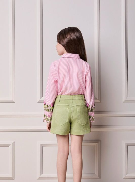 Conjunto Infantil Blusa Boxy Esquila de Lacinho e Shorts Verde Ultramarine - Infanti