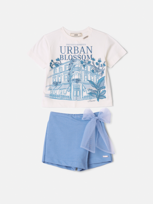 Conjunto Teen Blusa Tule e Saia-shorts Babados no Crepe Estrelas - Two In