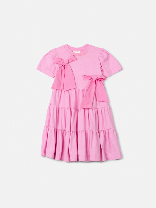 Vestido Infantil Tule Glitter Pregas e Laço Frontal Rosa Claro - Petit Cherie