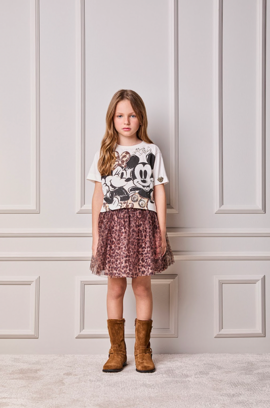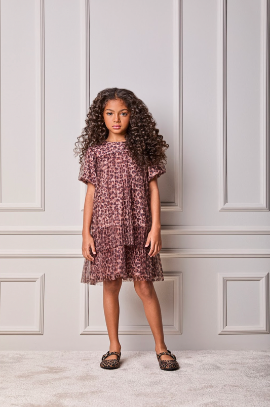 Vestido Infantil Rodado Tule Esclusivo Animal Print Aplicação Laço Strass - Luluzinha