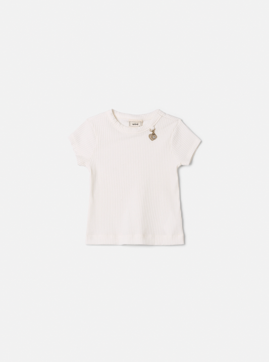 Camiseta Teen Baby Look Ursinho Amarração Mangas Off White - Two In