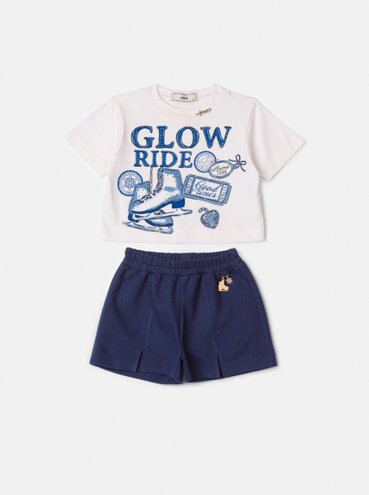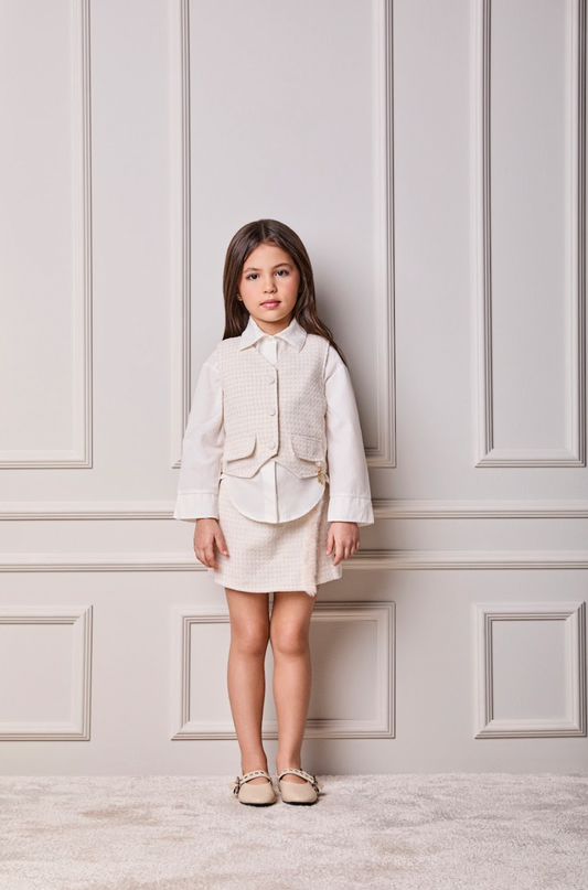 Conjunto Teen Blusa Pregas Laço Alça e Shorts-saia Sarja Star Off White - Two In