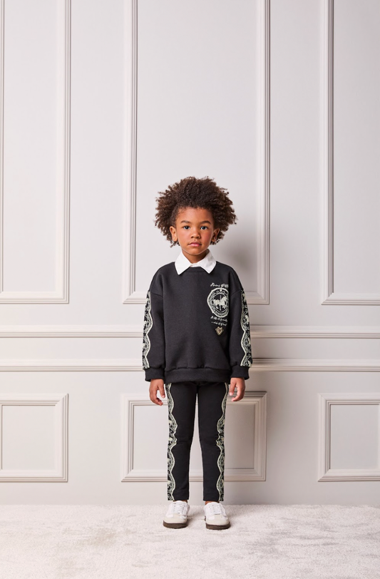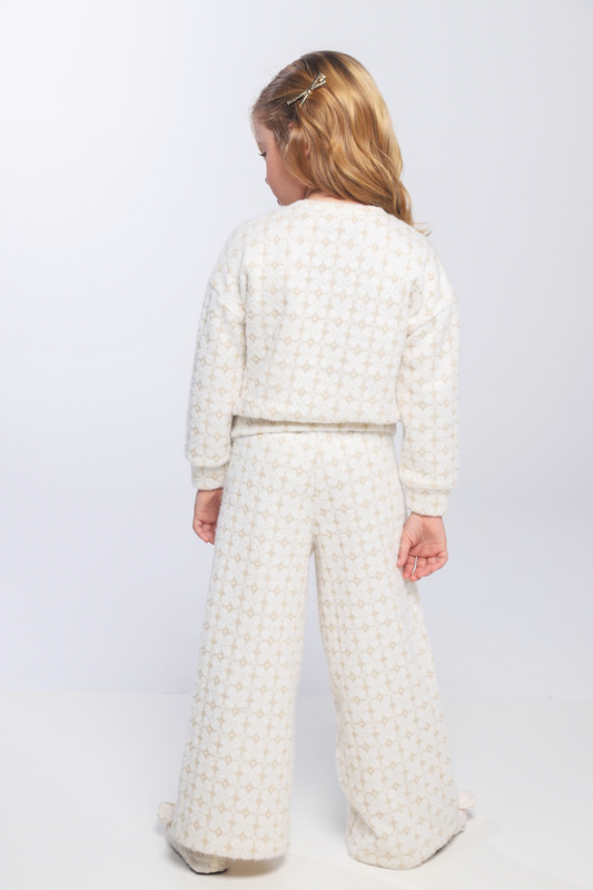 Conjunto Infantil Blusão e Calça Peluciado Lurex Bordado Manual Off White - Luluzinha