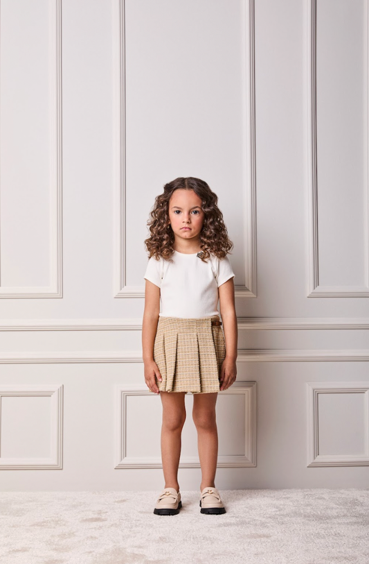 Saia-shorts Teen Pregas Alfaiataria Xadrez Coração Strass - Two In