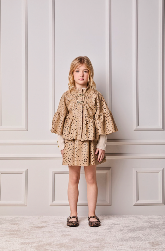 Saia-shorts Teen Couro com Tachas Marrom - Two In