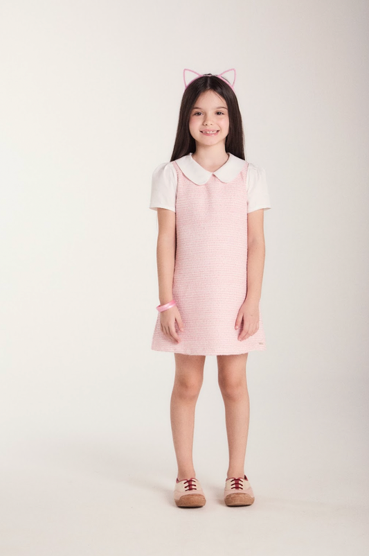 Vestido Infantil Reto Malha Tweed Algodão Gola Alfaiataria Rosa Claro - Beabá