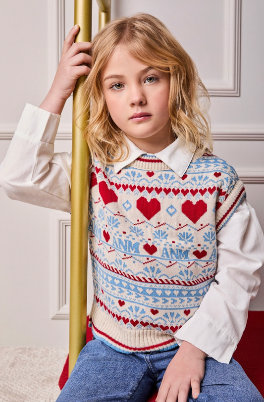 Calça Infantil Alfaiataria Sarja Listras e Corações Azuis - Pituchinhus