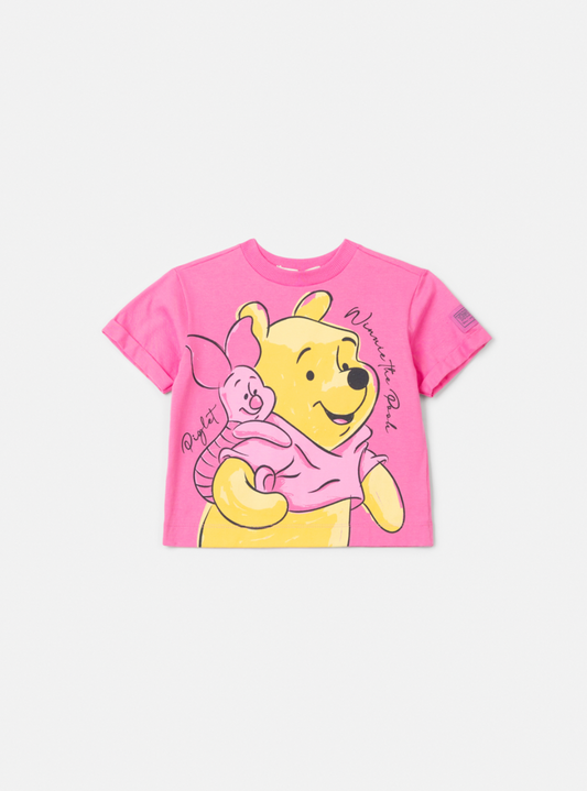 Camiseta Teen Baby Look Ursinho Amarração Mangas Vermelha - Two In