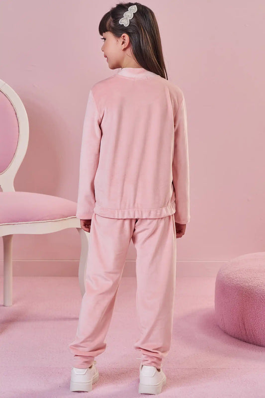 Conjunto Jaqueta e Calça Jogger Veludo Elastano Rosa Claro - Infanti