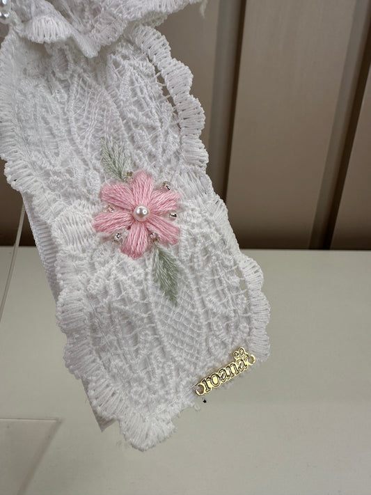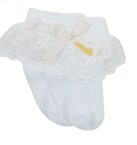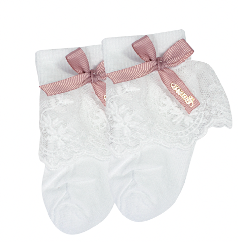 Meia Infantil Clássica Renda Lacinho Rosa Seco - Roana