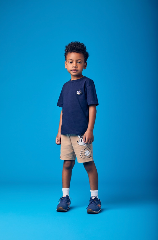 Conjunto Infantil Camiseta Marinho Mickey e Bermuda Bege - Youccie