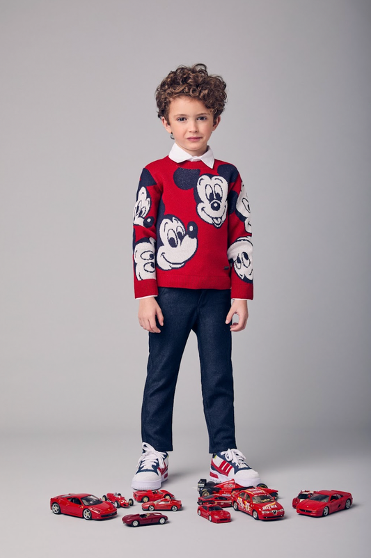 Conjunto Infantil Casaco Tricô Mickey Vermelho e Calça Jeans Leve Casual Marinho - Youccie