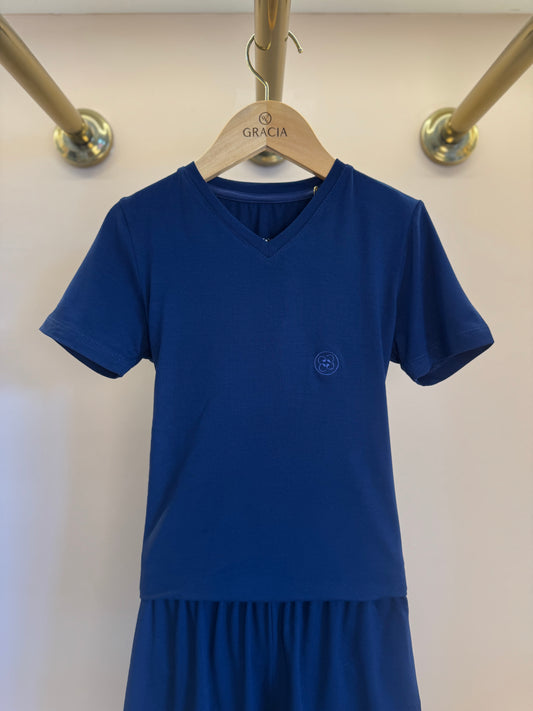 Pijama Infantil Le Basique Blusa MC e Shorts Azul Infinito - Conforteca