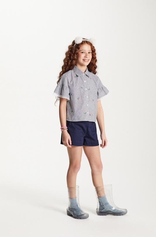Conjunto Infantil Blusa Peplum e Shorts Navy - Luluzinha
