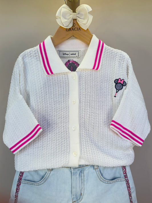 Conjunto Infantil Blusa Tricot Minnie Tennista e Shorts Sarja Off White - Animê