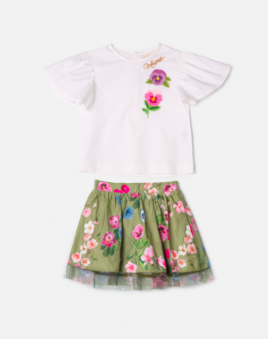 Conjunto Teen Bata Estampada Floral e Short-Saia Floral - Two In
