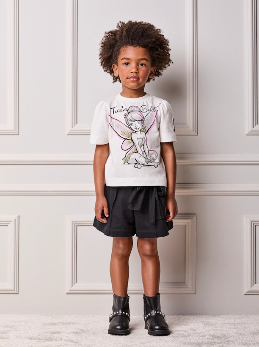 Conjunto Infantil Blusa Tinker Bell Off Strass e Shorts Preto Laço - Animê