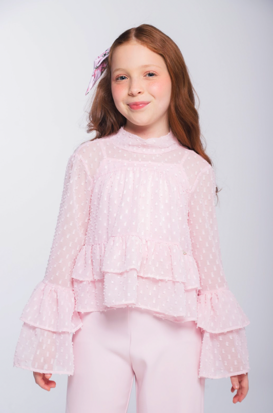 Conjunto Infantil Blusa Chiffon com Babados e Calça Alfaiataria - Luluzinha