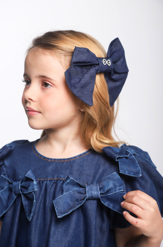 Vestido Infantil Jeans Aplicação Laços - Luluzinha