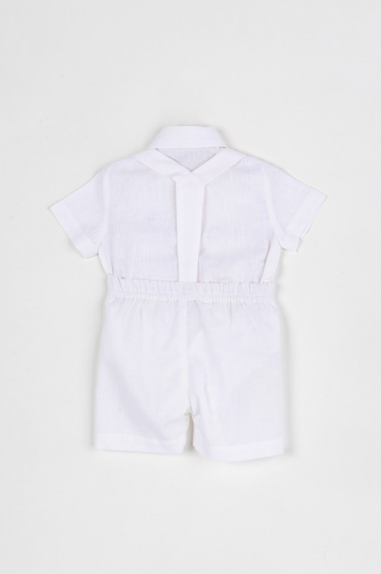 Conjunto Bebê Body, Bermuda e Suspensório Cambraia Linho de Algodão Off White - Um Mais Um