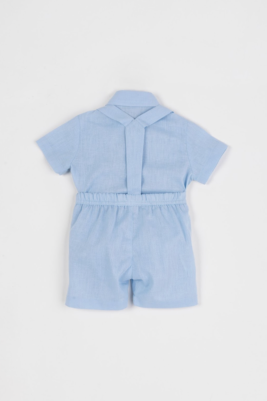 Conjunto Bebê Body, Bermuda e Suspensório Cambraia Linho de Algodão Azul Claro - Um Mais Um