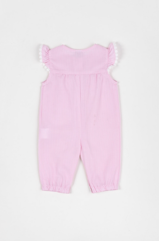 Romper Bebê Algodão Fio Tinto Abertura Frontal Rosa Claro - Um Mais Um