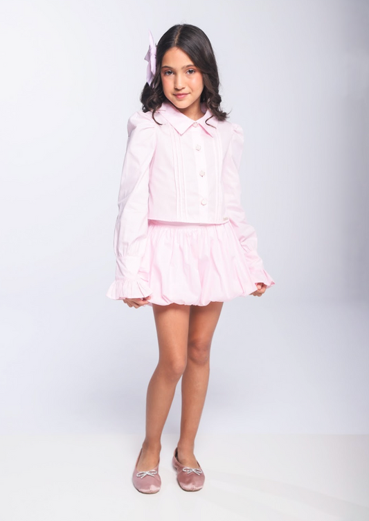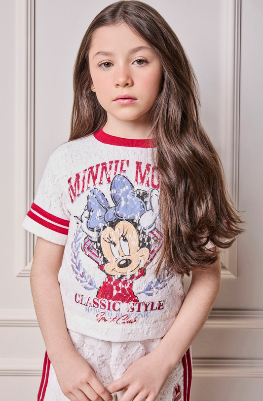 Conjunto Infantil Blusa Lacinhos e Saia-short Tule Babado - Petit Cherie