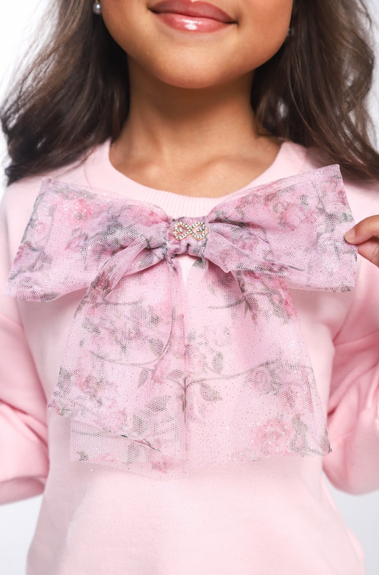 Blusa Infantil Laço Tule Rosa - Luluzinha