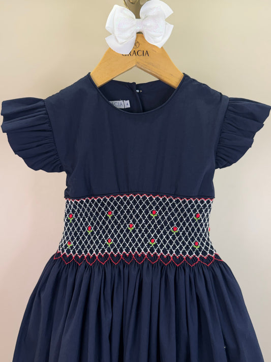 Vestido Infantil Clássico Algodão Ísis Marinho - Gracia