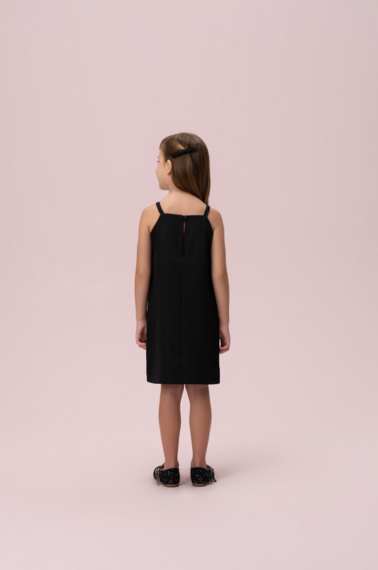 Vestido Infantil Alfaiataria Preto Lacinhos e Strass - Petit Cherie