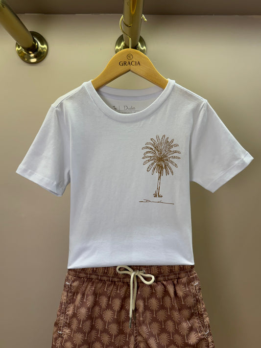Conjunto Infantil Camiseta Branca e Shorts Coqueiros Bege - Dudes