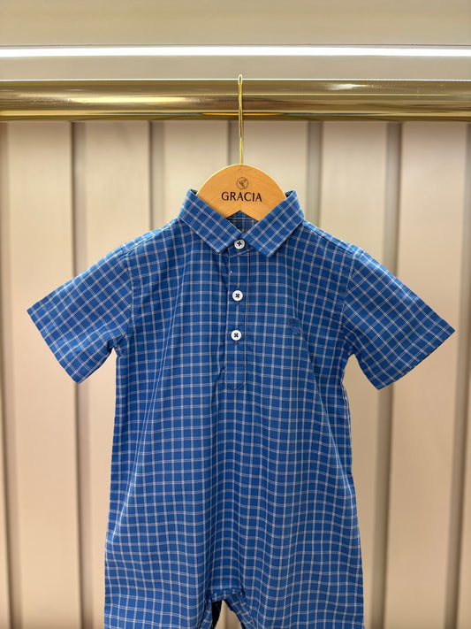 Macaquinho Infantil Algodão Xadrez Azul - Dudes
