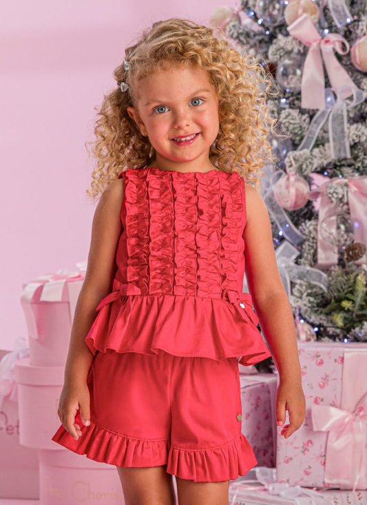 Conjunto Infantil Algodão Vermelho Blusa e Shorts Babados - Petit Cherie