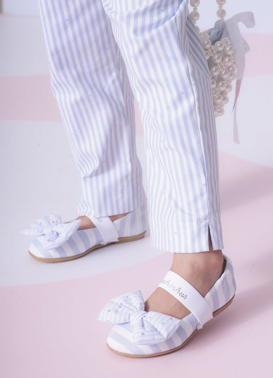 Calça Infantil Alfaiataria Sarja Listras e Corações Azuis - Pituchinhus