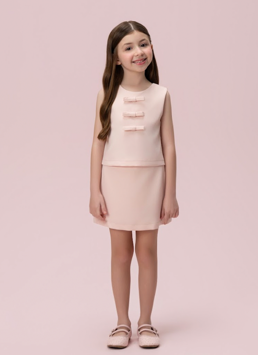 Conjunto Infantil Alfaiataria Blusa Lacinhos e Saia Salmão - Petit Cherie