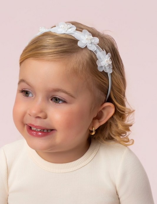 Tiara Infantil Flores 3D Tule Azul - Petit Cherie