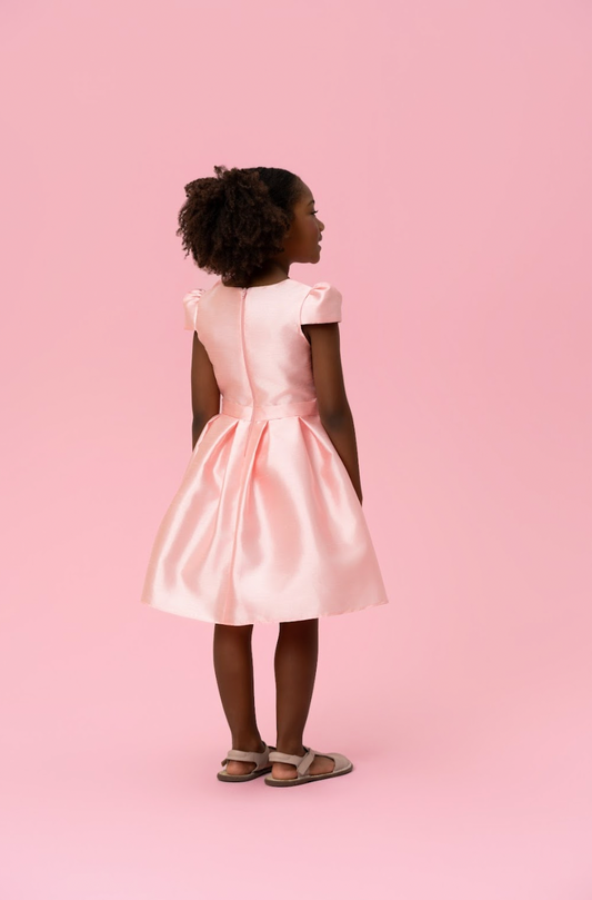 Vestido Infantil Festa Manga e Laço Rosa - Mon Sucré