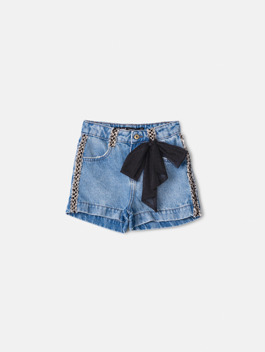 Conjunto Infantil Blusa Lacinhos e Saia-short Tule Babado - Petit Cherie