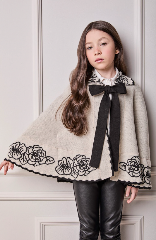 Vestido Infantil Festa com Capa Tule Bordado Creme - Petit Cherie