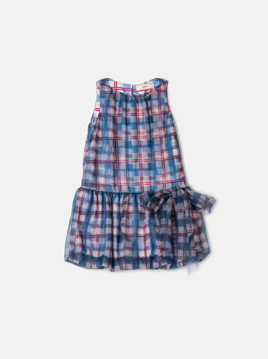 Vestido Infantil Festa Laço Costas e Flores Azul - Mio Bebê