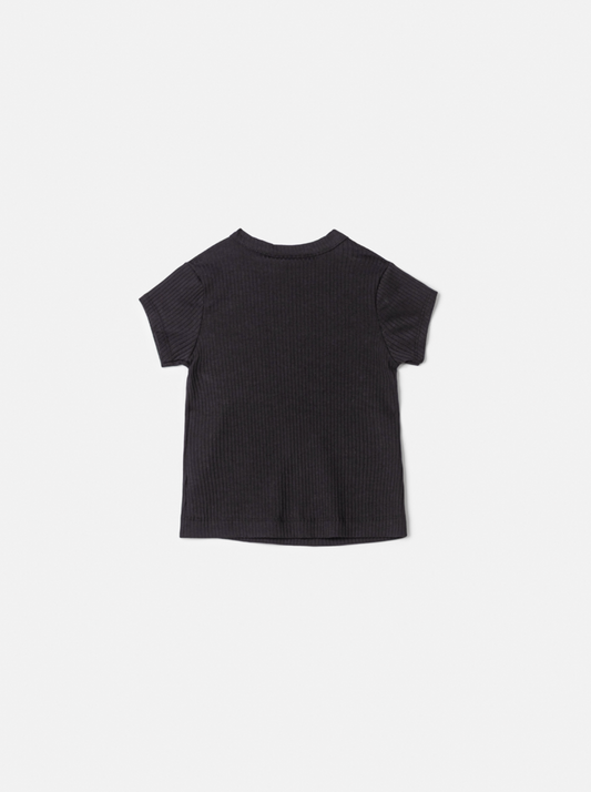 Camiseta Teen Baby Look Ursinho Amarração Mangas Preta - Two In
