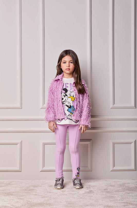 Conjunto Teen Blusa Suéter Tricot Dog Tennista E Calça Legging Cirrê com Bolsos Rosa - Two In